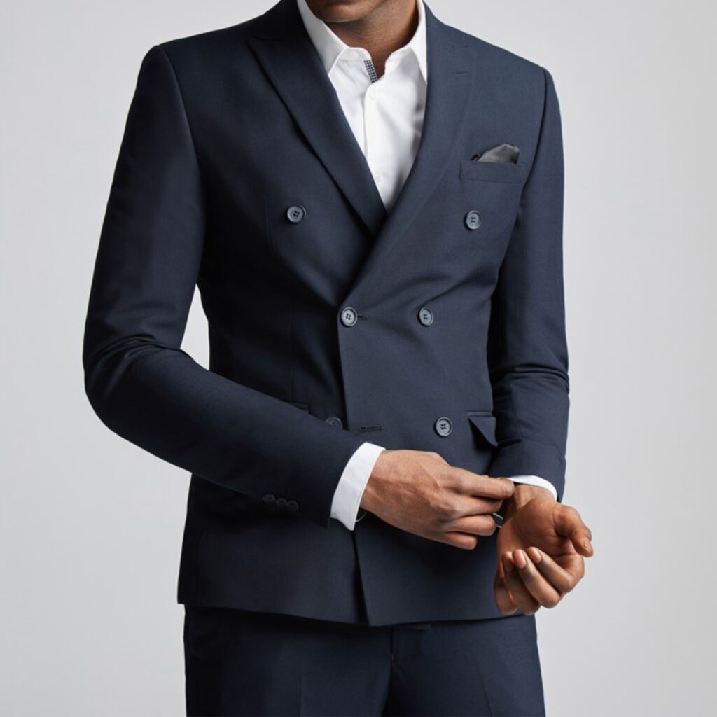 For those who want something more fashion-forward and structured, the double-breasted suit is a standout. With its strong silhouette and sharp lapels, it’s ideal for bold dressers. Often chosen for weddings or elevated business style.